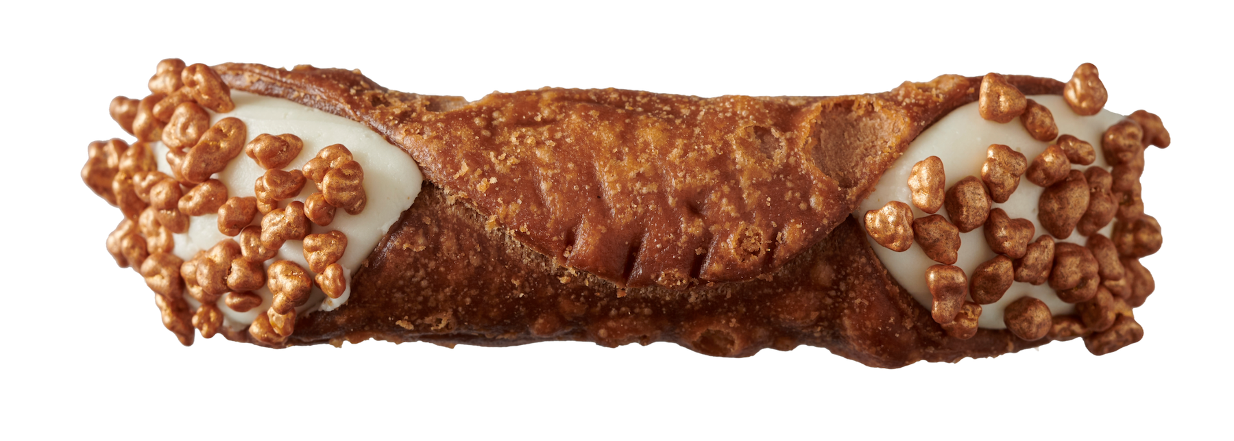 Cannoli met Marc de Champagne (40 % alcohol), topping: Bolletjes Goud Ruby